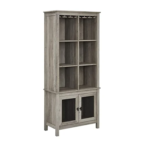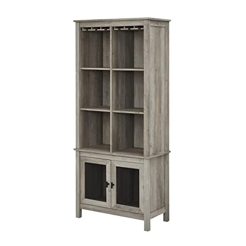 - This unit has two cabinets with two wire mesh doors. You can use 6 shelves for your books or add wine racks, in addition to space to hang your glassware