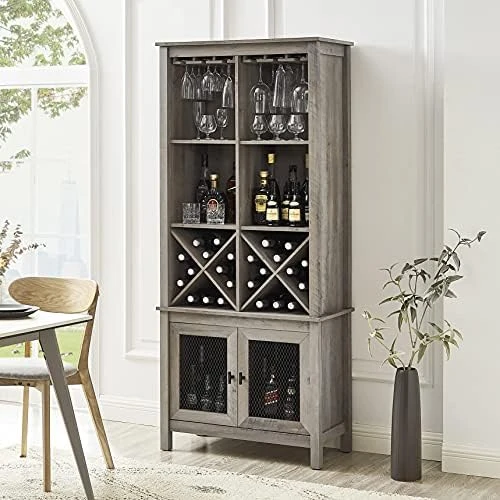 - For extra storage space: you can use this cabinet either as a bookcase or as a bar cabinet with two wire mesh doors, two wine racks and a place to hang your glasses.