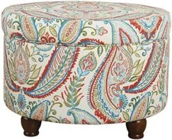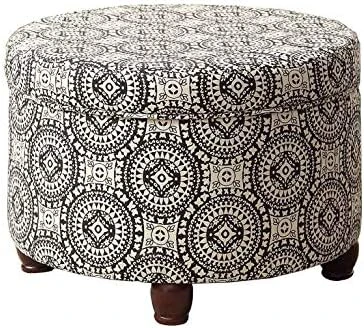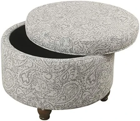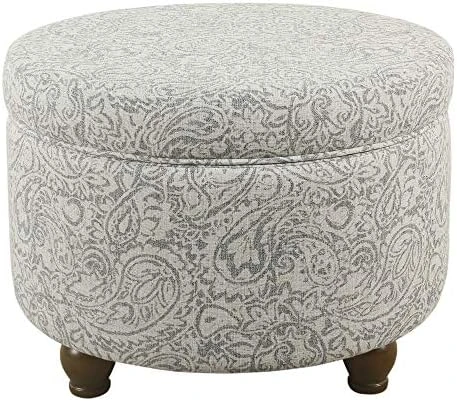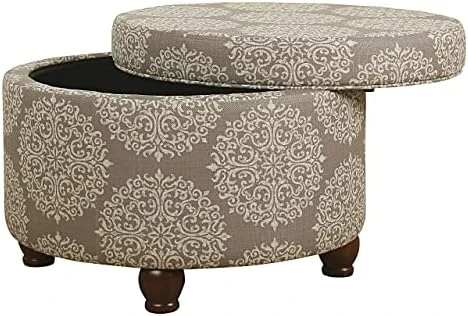 - STORAGE OTTOMAN: Created with premium soft and durable woven print fabric our Round Ottoman with Storage offers a timeless style | Perfectly completed with tapered wood legs