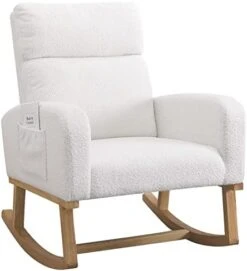 - 🌻𝙃𝙄𝙂𝙃 𝘽𝘼𝘾𝙆 & 𝙎𝙊𝙁𝙏 𝙎𝙋𝙊𝙉𝙂𝙀: This ergonomically designed modern rocking chair features a wide and high back with a double back and a super soft and thick fluffy back for maximum body comfort. More importantly, the seat cushion is as soft and fluffy as the backrest, with high resilience, and it will not collapse and deform after sitting for a long time. Close your eyes and lean on it to gently rock it, which can effectively relieve your fatigue and relax your body and mind.