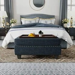 - Dimension & Details:Ottoman size:34.7″*23.6″*17.7″(L*W*H).Storage Space Dimension: 31.5″*20.1″*5.9″(L*W*H).Tray Dimension:30.3″*19.5″(L*W)Weight capacity: 440 lbs.Assembly Required-Just screw 4 legs.