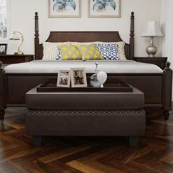 - Dimension & Details:Ottoman size:34.7″*23.6″*17.7″(L*W*H).Storage Space Dimension: 31.5″*20.1″*5.9″(L*W*H).Tray Dimension:30.3″*19.5″(L*W)Weight capacity: 440 lbs.Assembly Required-Just screw 4 legs.