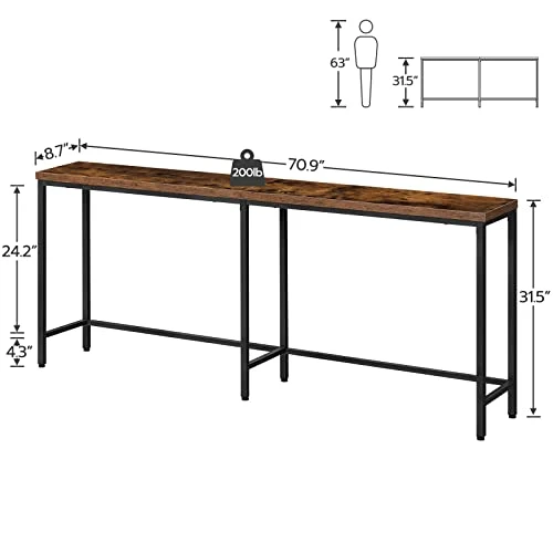 - Simple and Versatile: The narrow and modern sofa table with farmhouse style is a landscape no matter where it needs to be positioned. Plenty of space to house keys and backpack at the entrance, stable enough to put the plants next to the windows, solid extremely to store books, magazines, photo frames behind the sofa