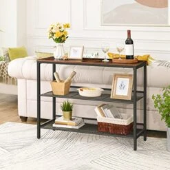 - To Guard Your Entryway: 3 layers to hold your belongings; 2 lower layers can be tilted to meet your different needs. Sized in 39.4” x 13.8” x 31.5”. A messy entryway will be a thing in the past, this console table will be your sanctuary, creating a welcoming atmosphere in your entryway