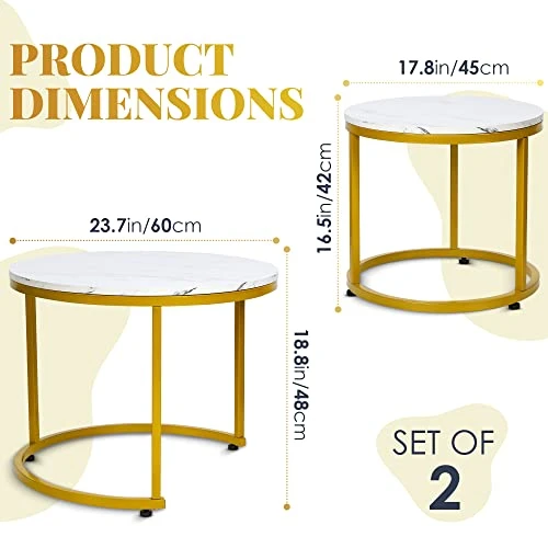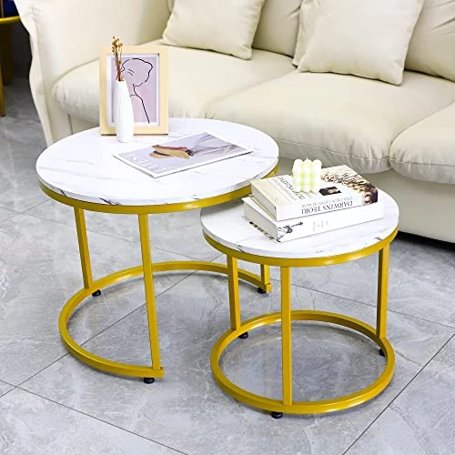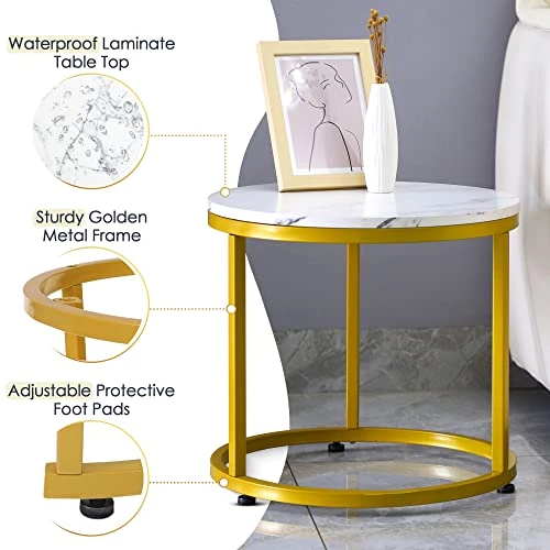 - CLEAN AND ELEGANT DESIGN: White marble tabletop with gold accented legs adds a complimentary look of status and prestige to your interior design. Makes a great addition to lightly colored rooms and is easy to move around with its lightweight.