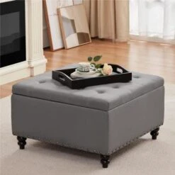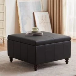 - Β SOPHISTICATED DESIGNοΌThis Storage Ottoman Coffee Table has a leather surface, which is very easy to clean, so you don’t have to worry about drinking drinks or coffee on the storage ottoman. The lines of the surface make the whole look simple and atmospheric, it will be the perfect furniture accessory.