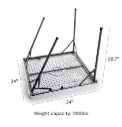 - Top surface measures 34” W by 34” L, creating roomy tabletop space that can withstand 200 lbs. of evenly distributed weight