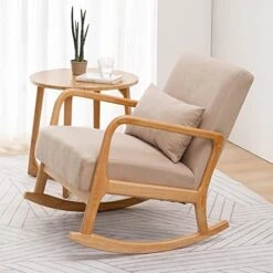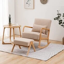 - 🔘【Ergonomic support】The ergonomic angle of the backrest of our living room glider chairs allows you to relax and be comfortable while sitting. Wooden armrests with a certain curvature provide more comfortable position to arm. Putting your legs on the footrest can also relieve you of the fatigue of the day