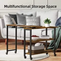 - 【Ample Storage Space】 On the one hand, equipped with 2-tier shelves, the sofa side table offers sufficient storage space for you to arrange your books, photo frames and other items you may have. On the other hand, spacious tabletop surface is perfect for placing magazines, plant and so on.All wooden plate is made of high-quality PB material, which is durable and eco-friendly to prevent scratch and wear; With the smooth and flat surface will allow you to put cups from being tipped