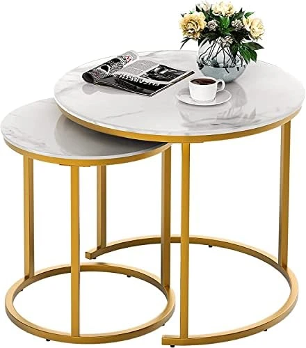 - STURDY AND DURABLE: The tabletop of the nesting coffee table set is made of sintered stone and is a marble color, and the legs are made of the iron frame, which is sturdy and durable. The load-bearing capacity is 50 pounds, which can meet your daily placement needs. The elegant design of this round coffee table is so beautiful that it can easily match your existing decor and enhance the stylish appeal of your home.