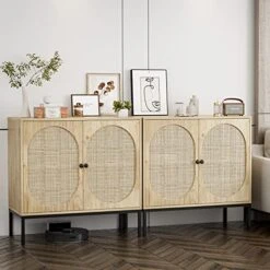 - ✅ 【LARGE STORAGE SPACE】 -The sideboard cabinet(credenza) with handmade rattan decorated doors features a spacious top and two large storage cabinets, the large storage spaces are great to place display items or decorations or necessities, make your room tidy and orderly. Smoothly painted surface is very easy to clean.