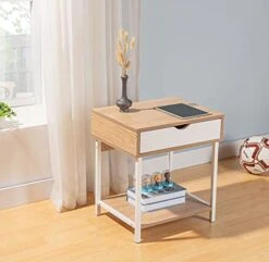 - Sturdy Construction: With the high quality wood boards and the powder coated iron frame, you get a stable and durable yet lightweight bedside table that is ready to support everything you need to keep by your side