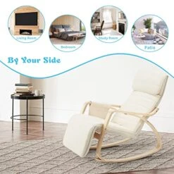 - 【Adjustable Footrest】The nursery rocking chair with 5-positions to adjust from 90 degrees to 180 degrees. You can manually adjust the footrest to meet your different needs. It will bring a variety of seating experiences. The chair can be assembled quickly according to the detailed instruction.