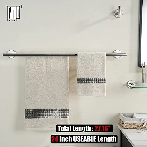 - 【Measure Before Buying Need 28 Inch Space】 24 Inch USEABLE Bar, Total Length 27.16 inch. No need to fold your towel any more.