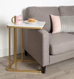 - Constructed of a sturdy metal base and a solid man-made marble top, this table was made for not only style but also, convenience. It’s made to slide underneath a sofa or bed, so it’s super useful as well as gorgeous