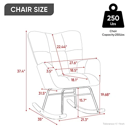 - Rocking Function – Gently rock your baby to sleep during nap time or read to your little ones in this comfy chair. Or just relax yourself after a whole day tired working. The large seat offers enough space and give you security.