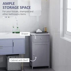 - MULTIPLE STORAGE: This bathroom cabinet features a slide-out drawer and a door cabinet with an adjustable shelf, providing ample storage space for your towels, soaps, tissues, and other bathroom items.