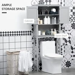 - STORAGE SPACE: This toilet cabinet has ample space for storing daily essentials or bathroom supplies. The interior adjustable shelf is designed for storage flexibility. It can be repositioned at three levels to accommodate items of different sizes. The open shelf provides extra space for shampoo, towels, and cleaning supplies.
