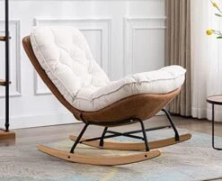 - This rocking chair feature a solid and manufactured wood frame finished in a glamorous hue for perfect stability and durability, this reliable design is able to accompany you for a long time and share your happiness every moment.