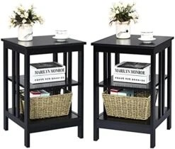 - 【3-Tier Storage Space】This nightstand comes with 3 tier shelves which have ample space to organize your books, magazines and daily supplies. The open shelves are easy to access.