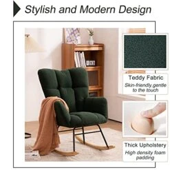 - [Multi-occasion Use] Elegant and luxurious, this modern rocking chair is perfect for modern home decor. Suitable for living room, bedroom, apartment, nursery, office, porch, balcony.