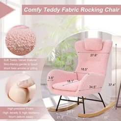 - 【Teddy Material】This nursery rocker is the epitome of comfort and style. Its high-quality teddy material provides a luxurious and soft feel that will make you feel like you’re sitting on a cloud. The thick cushion padding on the seat and back provides a comfortable seating experience, while the sleek and modern design seamlessly blends with any home or office decor, creating a warm and inviting atmosphere.
