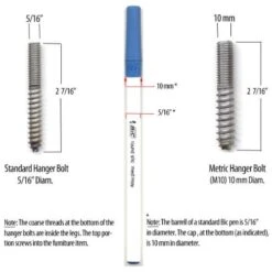 - Hanger Bolt: 5/16″ – Make sure to measure your attachment point! Unsure of what size hanger bolt you need? Consider purchasing a Leg Daddy Hanger Bolt Fit Test Kit