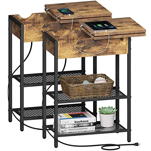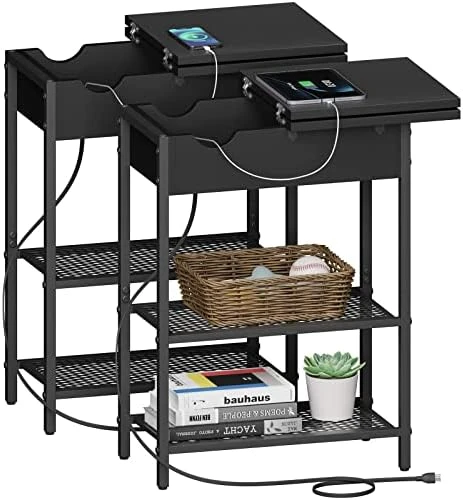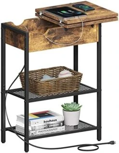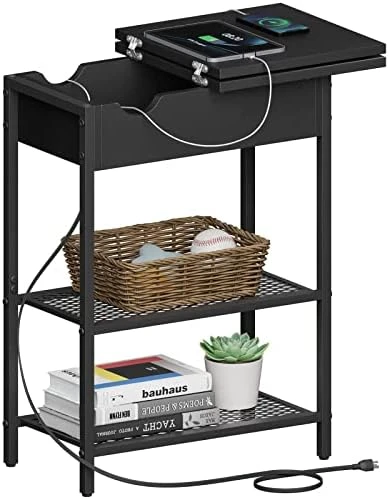 - Flip Top and Shelves for Easy Storage: Our narrow end table for small places offers you ample space to store. Flip top drawer for concealed storage, and 3 shelves for open display on which you can place your remotes, laptop, phone, lamps, books, etc. Dimensions: 23″ x 11.5″ x 24.1″ (58.4 x 29.2 x 61.3 cm)