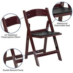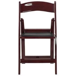 - Resin Folding Chair. 1000 lb. Weight Capacity. Lightweight Design. Mahogany Frame Finish. UV Stabilized Polypropylene Resin. Black Vinyl Padded Upholstered Seat. Waterproof Detachable Seat. CA117 Fire Retardant Foam. Anti-Static. Aluminum Hardware. Designed for Indoor or Outdoor Use. Designed for Commercial Use. Folded Size: 17.5″W x 2.25″D x 35″H.