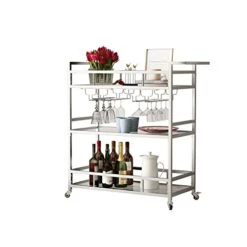 - Flexible, quiet wheels make rolling bar cart easy to maneuver around the kitchen or dining room. Designed to prevent wear and scratching on floors, countertops and more.