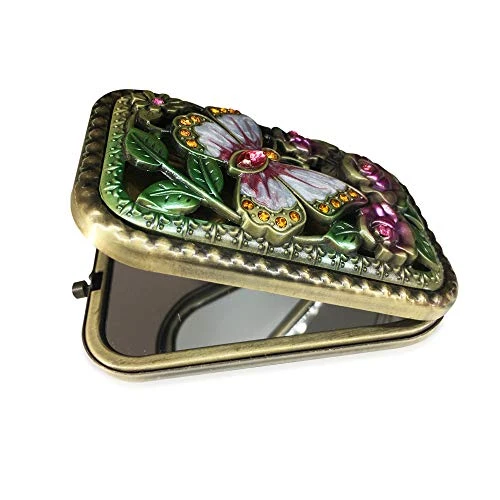 - Hollow-out design of the face, Butterfly and flowers sculpture. Super-compact, two-sided travel mirror, easy be carried inside your bag wherever you go! Featuring a magnifying glass on one of the sides, a normal glass on the other side, it’s perfect for seeing with perfect clarity every detail on your face, women used compact mirrors to refresh their makeup