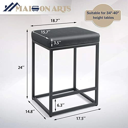- 【Wide Application & Easy Assemble】 – 18.7”(L) x 15.7”(W) x 24”(H) counter height barstool, suitable for 34-40 inches height tables. Easy to assemble, includes all necessary hardware and installation manual in the package. Maison bar stool’s industrial modern design and counter height is perfect for any dining table, kitchen counter, island, or home bar. Multi-functional use in home, restaurant, bar, pub, bistro, coffee bar, bedrooms, cafe, etc