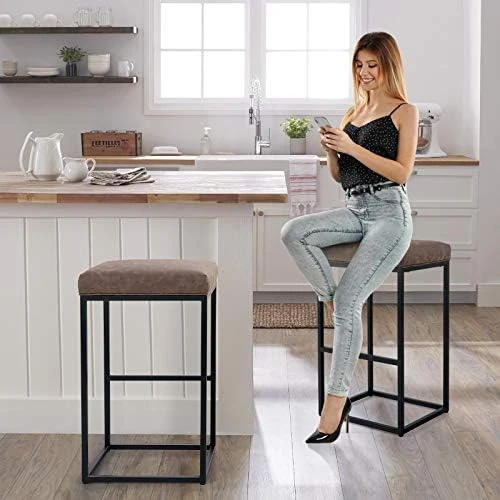 - 【Sturdy & Stylish Kitchen Stools】- Solid metal frame with built-in footrest makes the counter stool more sturdy, max loading capacity up to 330 pounds, and could be used for years without problem. Nicely stitched PU leather with matte black powder-coated steel base, the modern and minimalist design of the bar stool fits in with both contemporary and traditional decor.