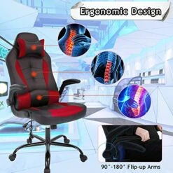 - ✔【Multi-function】Massage office chair have a vibrator with remote control, slight vibration can reduce the fatigue caused by your long hours of work; Adjustable height, pass the BIFMA and SGS, you can adjust the seat high from 17.7”-20.8”, back angle from 90°to 125°; 360-degree swivel; 90°-180° flip-up armrests. Office chair gaming chair ergonomic executive chair task chair