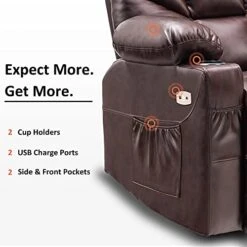 - 2 USB Ports & Cup Holders: With the help of the USB ports, keep your must-have devices fully charged and close to you. Meanwhile, put your drink on the cup holder when you are relaxing on the chair and watching TV. (ONLY for low-power devices, such as mobile phone.)