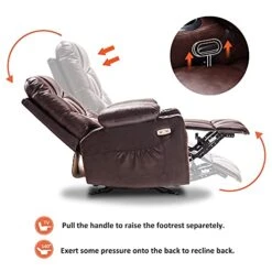 - Easy to Operate: Pulling the cable on the right side of the seat to raise the footrest up, the chair will be adjusted to a standard TV position. Then you can lean back to push the backrest to a maximum of 140 degrees. (Cannot be fixed reclining position.)