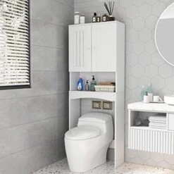 - ✅ TOILET CABINET DIMENSION: 24.8”(W) x 7.87”(D) x 76.77”(H), bottom shelf is 35.5 inches from the floor which fit most standard-height toilets. Larger storage space can accommodate items of different sizes to meet your unique needs