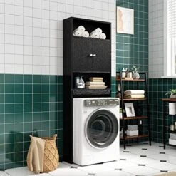 - ✅ TOILET CABINET DIMENSION: 24.8”(W) x 7.87”(D) x 76.77”(H), bottom shelf is 35.5 inches from the floor which fit most standard-height toilets. Larger storage space can accommodate items of different sizes to meet your unique needs