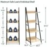 - 【STRONG & DURABLE】This sturdy ladder shelf is made of high-quality square steel tube and durable particleboard and it was designed with a grab wall design. Solid screws hold the shelves to the walls and prevent them from collapsing.