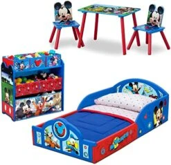 - FOR MICKEY MOUSE FANS: Bed, table and chairs and toy bin feature colorful Mickey Mouse graphics your little one will love | Bed uses a standard crib mattress (sold separately)
