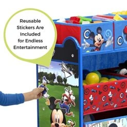 Kids love themed bedroom sets—and this Mickey Mouse 5-Piece Toddler Bedroom Set by Delta Children is the best there is! This colorful bedroom set with Mickey Mouse graphics includes all the pieces you need to create the room of their dreams, like a Sleep and Play Toddler Bed, Table and 2 Chair Set and 6 Bin Toy Organizer. The Sleep and Play Toddler Bed features a low mattress height and built-in guardrails that make it the best option for your child’s first big-kid bed, giving them the independence they crave while keeping them safe throughout the night. The bed’s versatile plastic frame can also be used as a play enclosure or a ton of other fun things, like a ball pit (play balls not included). The table and chair set features one table and two chairs, designed at the perfect kid-sized height, making it ideal for snack time, playtime or homework. The 6-Bin Toy Organizer features a sturdy wooden frame that holds six fabric bins sized for every type of toy, so you can store books, blocks, and more. The toy bin also comes with reusable vinyl cling stickers that allow your child to decorate the sides themselves. Get the Mickey Mouse 5-Piece Toddler Bedroom Set by Delta Children today!