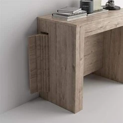 - DETAILS: Aluminum telescopic mechanism, with central iron legs, that gives stability to the structure when extended. When not in use the 5 extension leaves can be easily stored in the leg (with special slot).