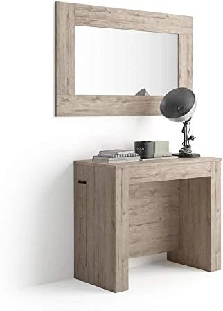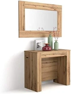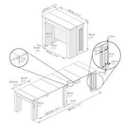 - MEASUREMENTS: Depth: 35.43 in. Height: 29.92 in. Min. length: 17.71 in. Length with one leaf 38.18 in, with 2 leaves 58.66 in, with 3 leaves 79.13 in, with 4 leaves 99.60 in, with 5 leaves 305 cm. Seats up to 12 people. Chairs not included.