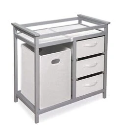 Badger Basket’s stylish Modern Baby Changing Table with Hamper and 3 Baskets is a practical and structured place for diaper changing, dressing baby for the day or night, and stashing diapers, wipes, toiletries, toys, blankets, dirty clothes, and more. Many safety features built in for peace of mind!