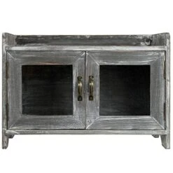 - Distressed finish gives the cabinet a stylish antique rustic aesthetic for a variety of home or office decors