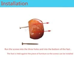 - Run the screws(prepare by yourself, total 12pcs ) in the holes and into the bottom of feet,the foot is held againt the piece of furniture so the screws can be installed, as the picture shows or use wood glue