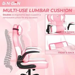 - 🍑 [PERSONALIZED COMFORT] Each body is unique. Instead of a fixed lumbar support cushion, N-GEN’s LEVIS is upgraded with an adjustable lumbar cushion. Both the head and lumbar cushions are removable for versatile customization.