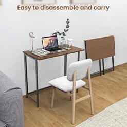 - 【Modern Design Style】Folding desk is feature of modern concise look is complemented, multi-purpose desk is a great addition to your home. It can be a computer desk, learning tables, game tables, picnic tables,secretarial desk. The perfect solution for smaller spaces or rooms with multiple uses.