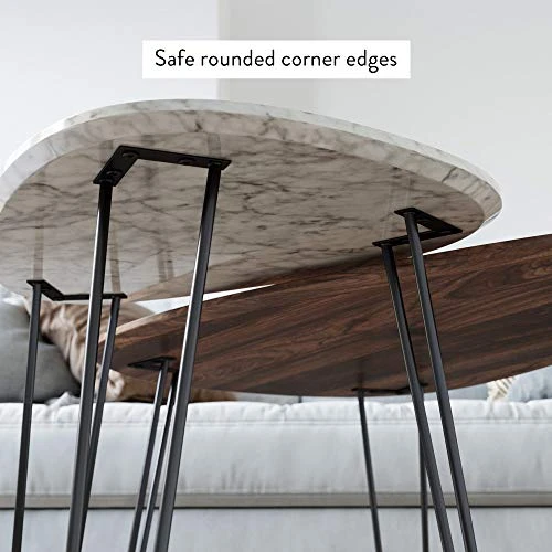 - The stacking coffee tables’ iron hairpin legs are accompanied with pre-attached floor protectors.