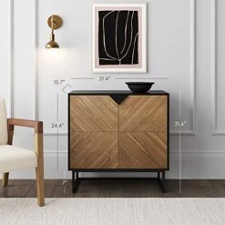 - Both rustic and modern, the accent storage cabinet with beautiful herringbone wood doors design will add style and character to any room